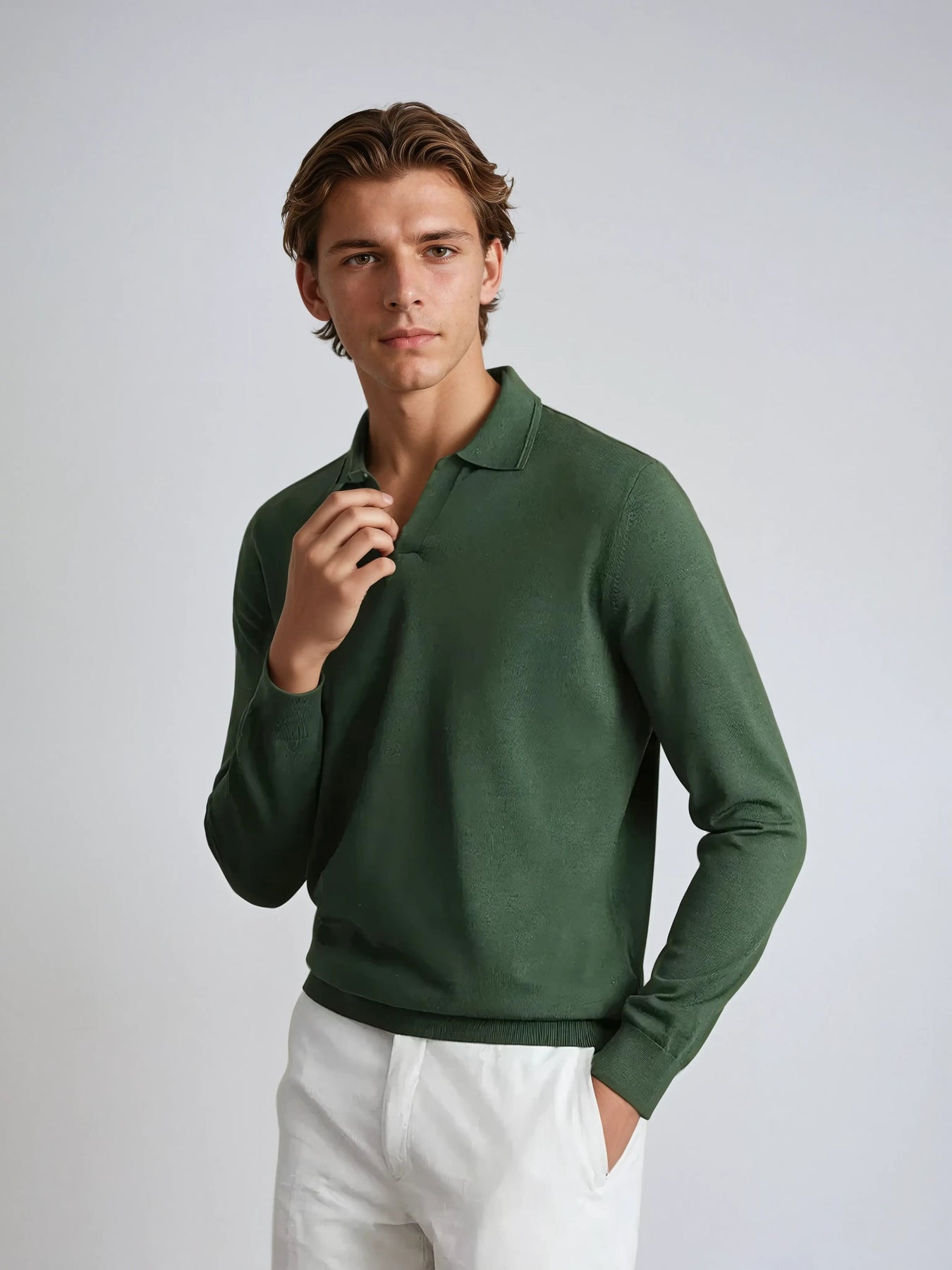 Discover the refined style of the Green Long Sleeve Polo Without Buttons